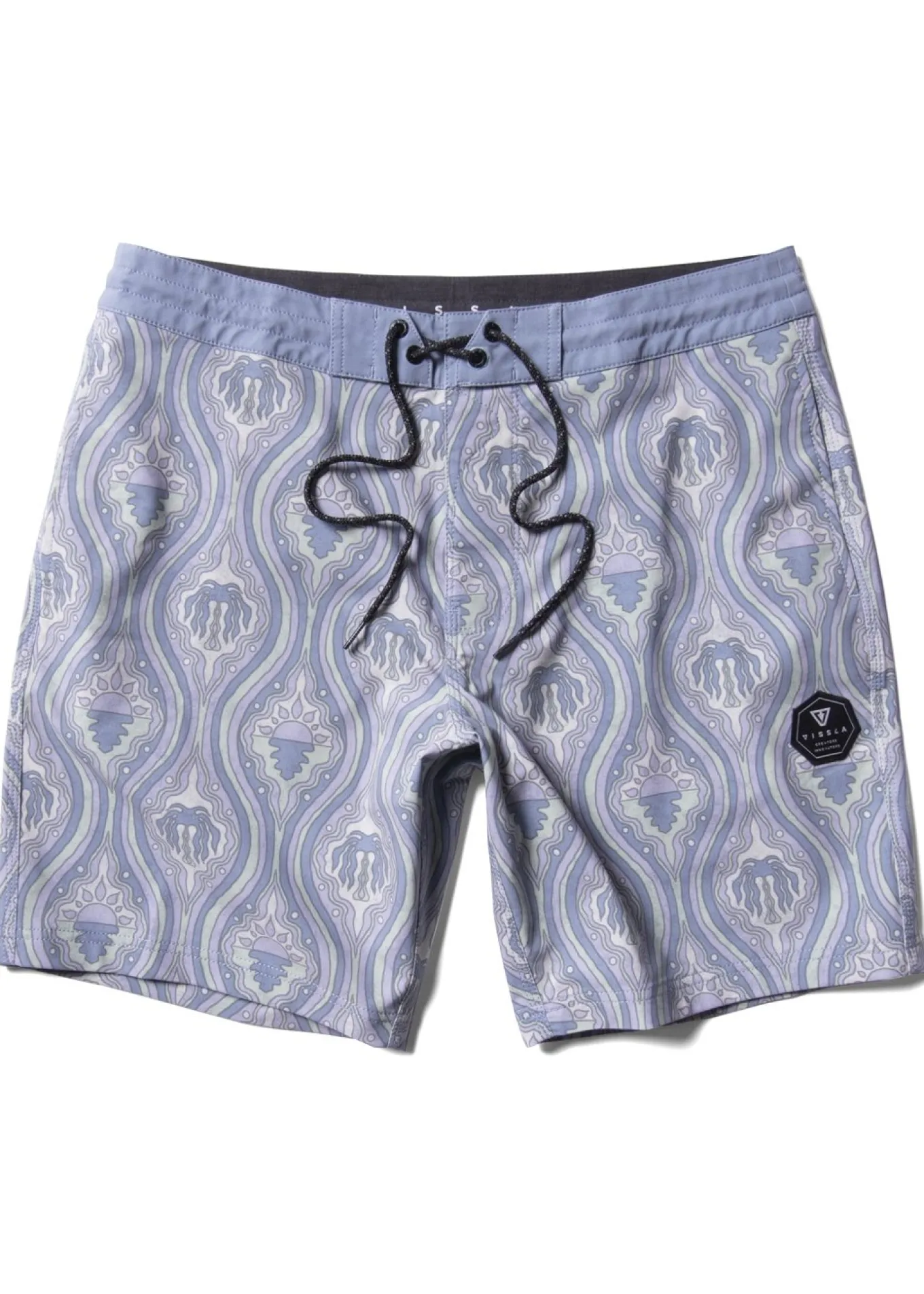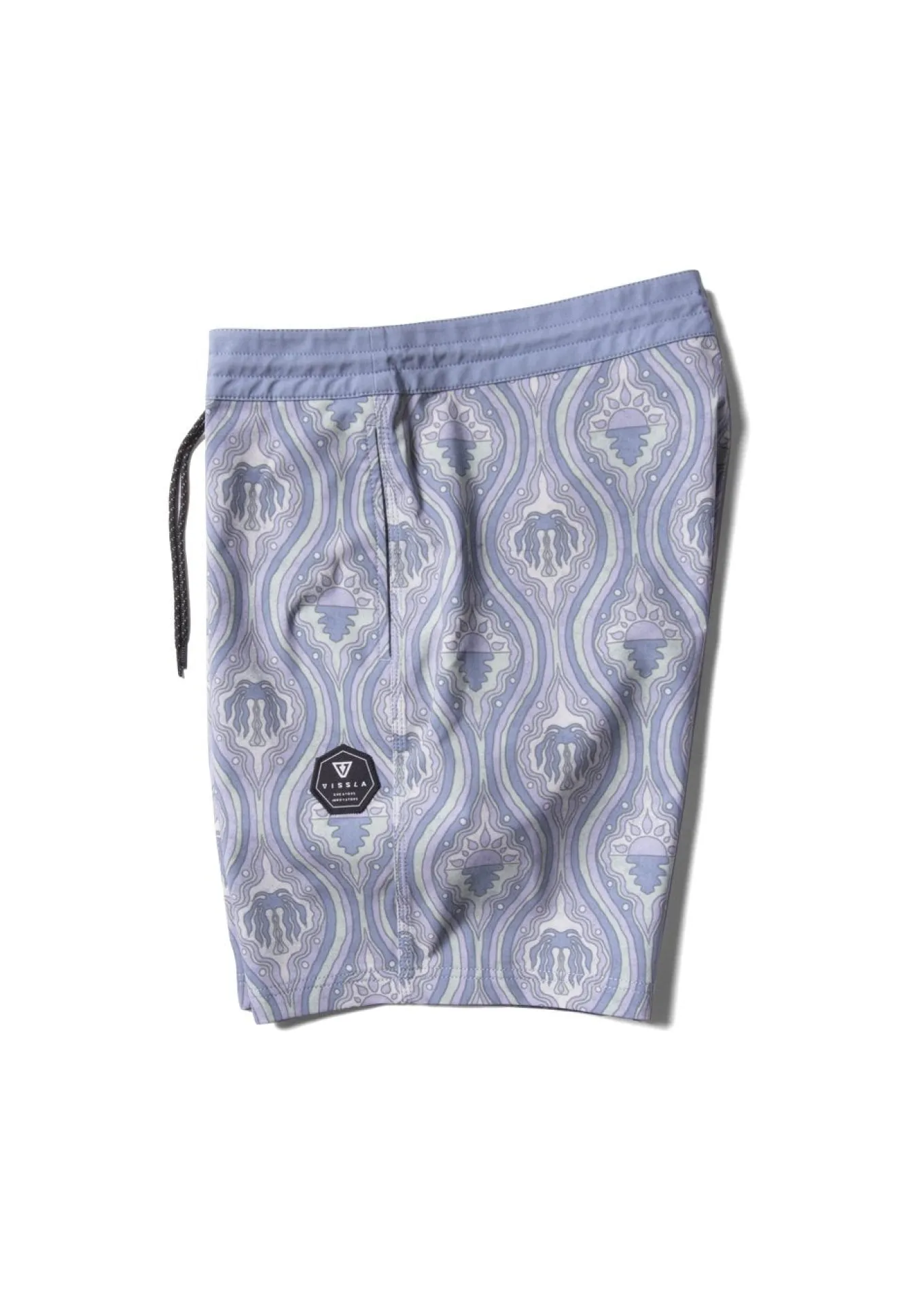 Heat things up with the Suntile, our premier 4-way stretch boardshort with the brightest disposition. Expertly crafted from a soft and stretchy blend of recycled polyester repreve and cotton. Additional features include a caliper scalloped hem back pocket, integrated key rope, and novelty Vissla embroidered patch at the side. 17.5” outseam.