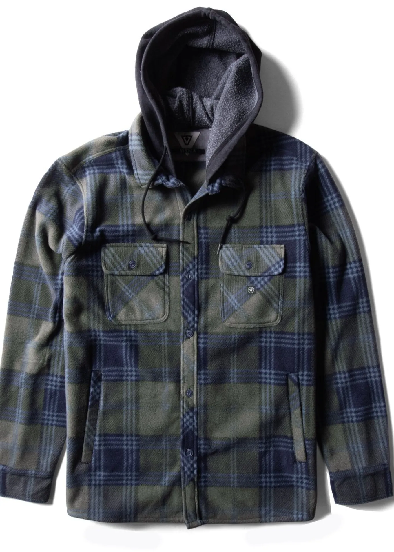 Warm up to the Eco-Zy Shirt Jacket, our ultra-soft and versatile heavyweight polar fleece. This “shirt jacket” is constructed with a built-in fleece hood, making it the perfect cold weather companion. Styling includes front chest pockets with button down flap, hand pockets, and Vissla woven label trims. Heavy garment wash.