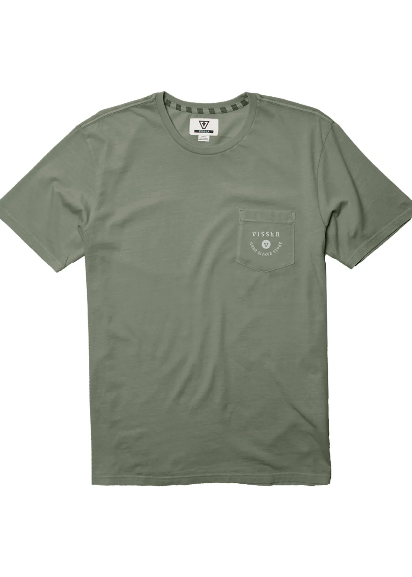 The finest Hand Picked Pocket Tee, a fully stoked 20 singles modern fit crew neck with pocket and back screen prints. This garment pigment dyed tee features side seam woven label and garment soft wash.