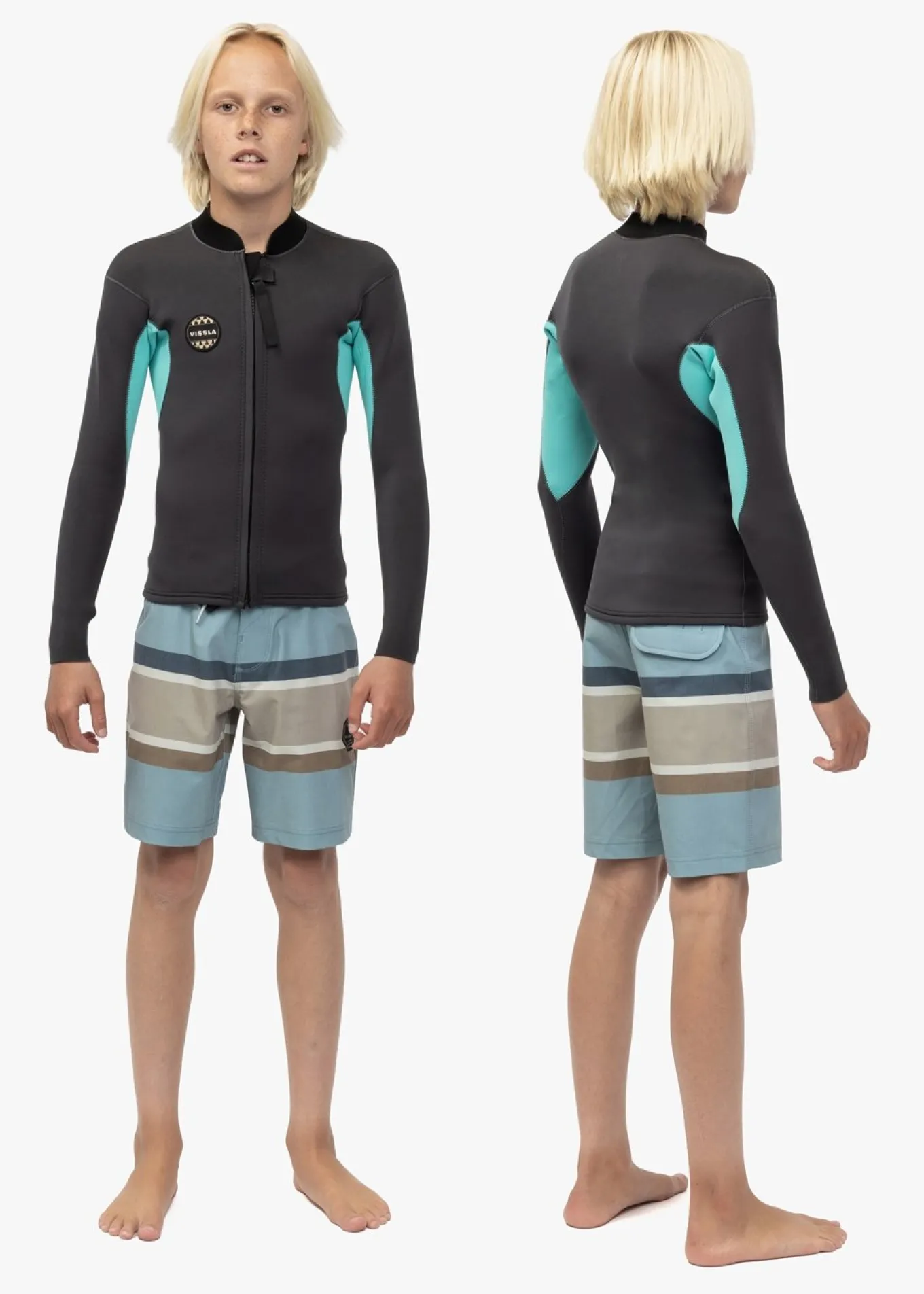 7 Seas Boys Raditude Jacket with 2mm neoprene body in super stretch fabric, triple glued inside and blind stitched sealed seams.