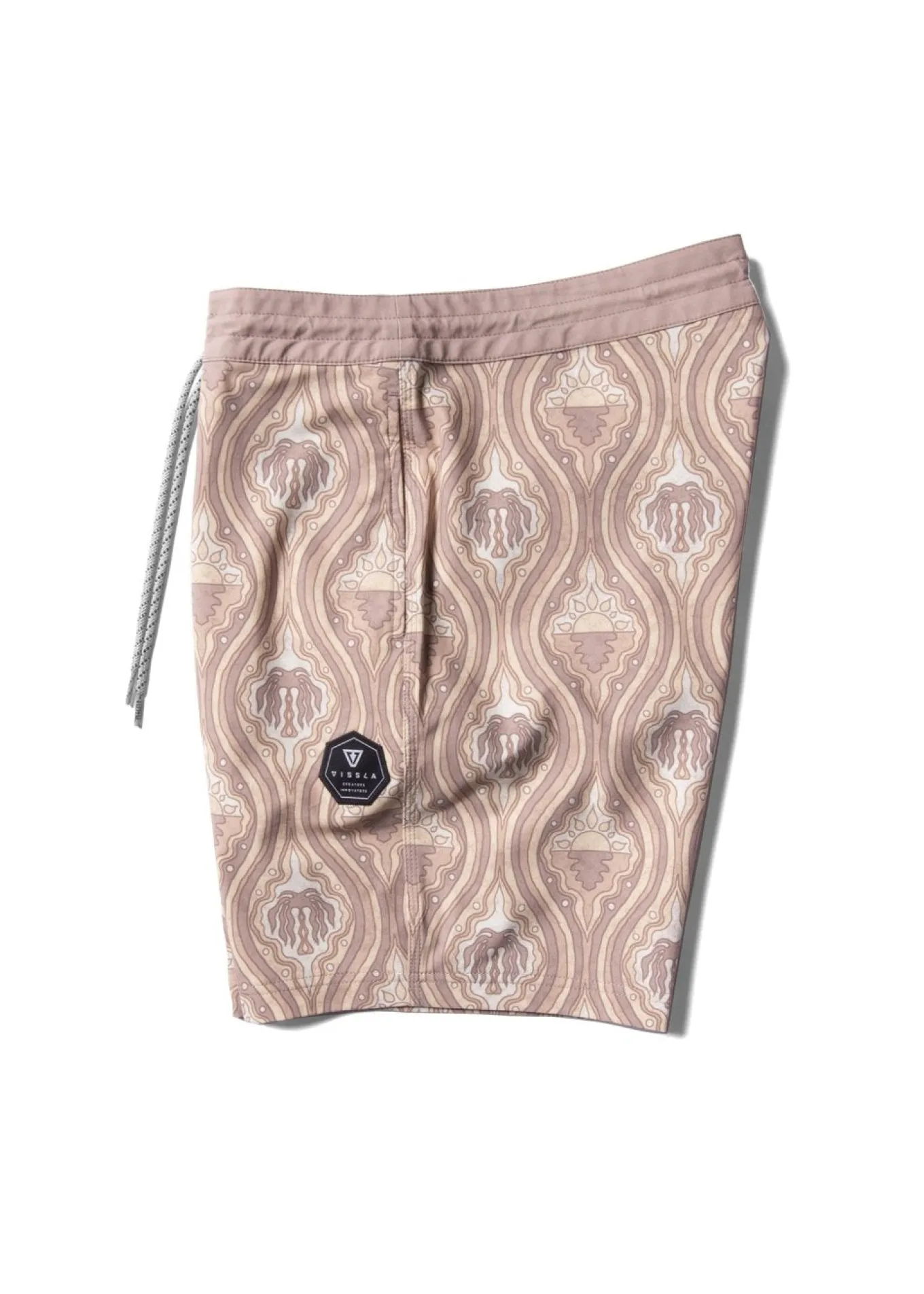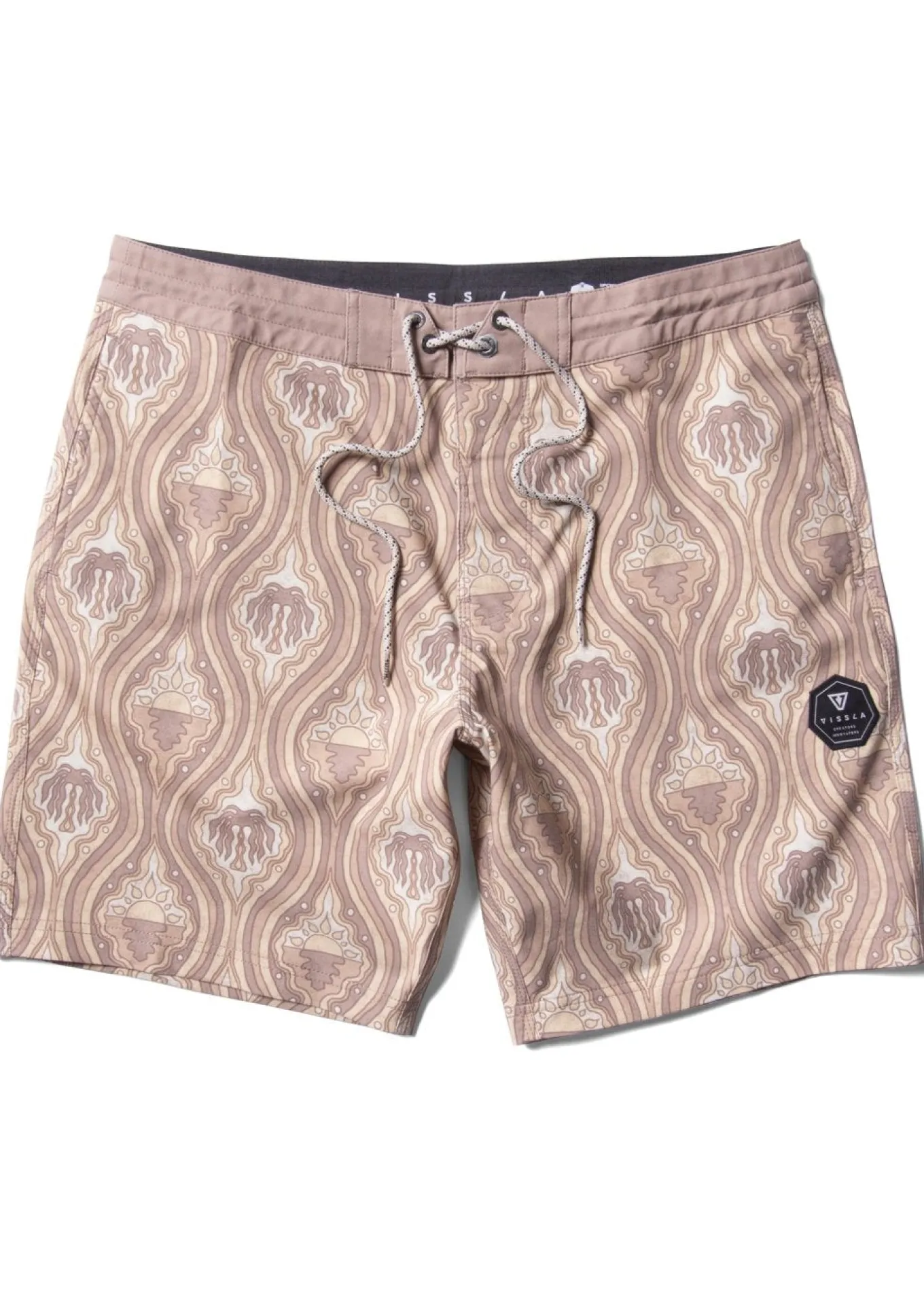 Heat things up with the Suntile, our premier 4-way stretch boardshort with the brightest disposition. Expertly crafted from a soft and stretchy blend of recycled polyester repreve and cotton. Additional features include a caliper scalloped hem back pocket, integrated key rope, and novelty Vissla embroidered patch at the side. 17.5” outseam.
